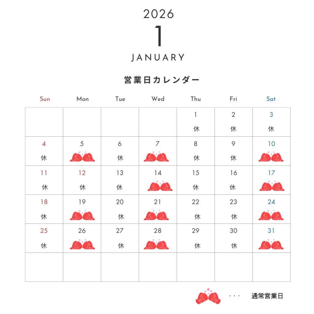 2026年1月営業カレンダー更新